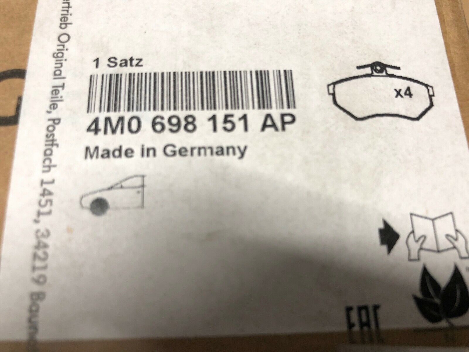 1 Satz Bremsklötze (original Audi) für den Audi Q7 4M der Vorderachse